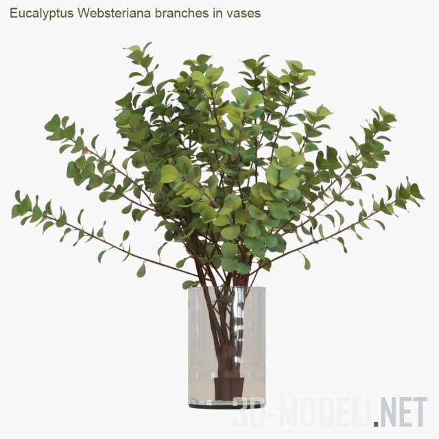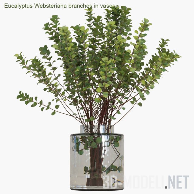 Ветви эвкалипта Websteriana в вазах, универсальный вариант для создания минималистичной декорации. Качественная трехмерная модель, текстуры в архиве.
