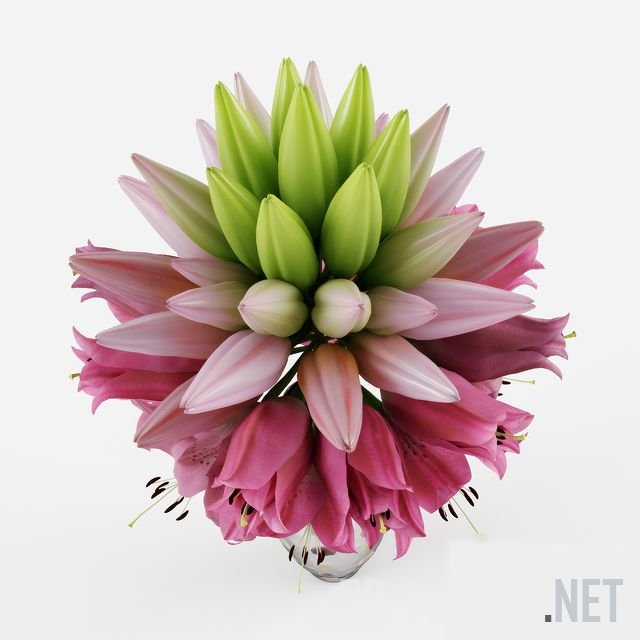 Ваза в горошек является идеальной емкостью для этого яркого букета из лилий Marlene. Особенностью этого сорта лилий является тот факт, что в процессе своей жизнедеятельности стебли лилии срастаются в один большой стебель, на котором одновременно цветут до 150 цветов, создавая одно общее соцветие.