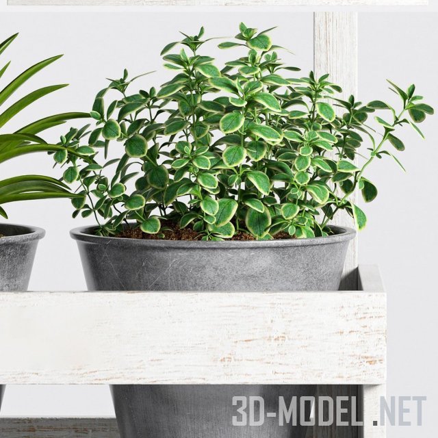 Деревянный декоративный контейнер в стиле кантри, с тремя жестяными «ведерками» с растущей в них зеленью. Сочетание беленых реек, «шифер» на «крыше» подставки, жестяной поверхности горшков и сочная зелень растений создают симпатичный ансамбль для украшения подоконника в доме, террасы, дачи в стиле Кантри или Прованс.