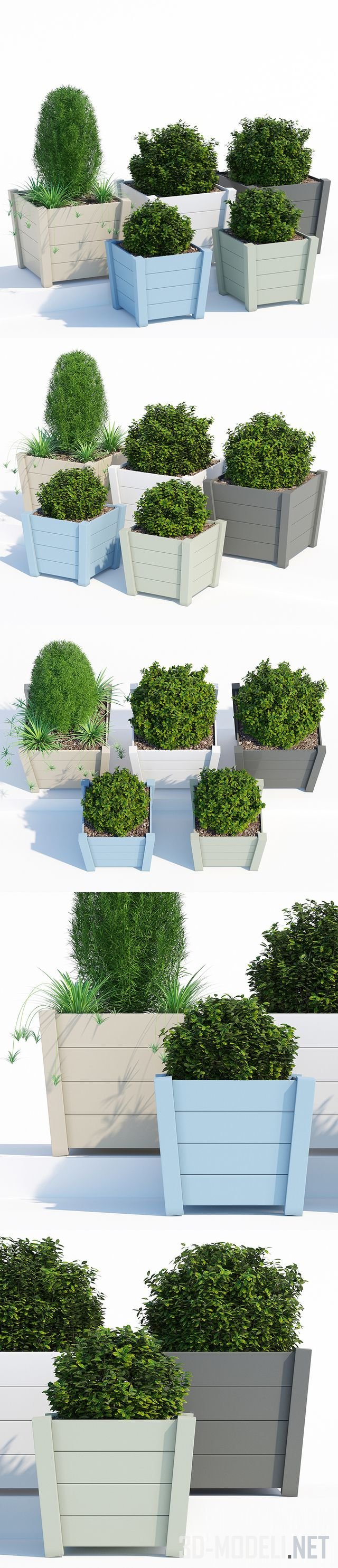 Небольшая коллекция декоративных контейнеров от Primrose из обработанной доски (акация). Представлены несколько вариантов габаритов контейнеров: 36 х 36 х 31 см и 44 х 44 х 37 см. Отделка пастельных тонов служит выгодным спокойным фоном для сочной зелени растений, высаженных в данные контейнеры.