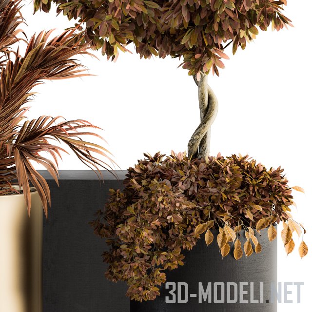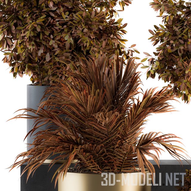 Для интерьера и экстерьера интересным цветовым акцентом и стильной находкой станет этот растительный сет. Растения имеют необычную окраску листьев, что хорошо сочетается с цветом горшков (черный, серый и бронзовый).