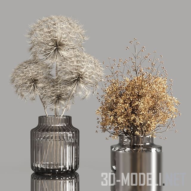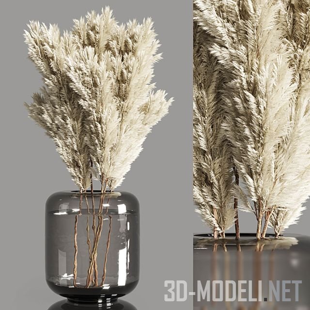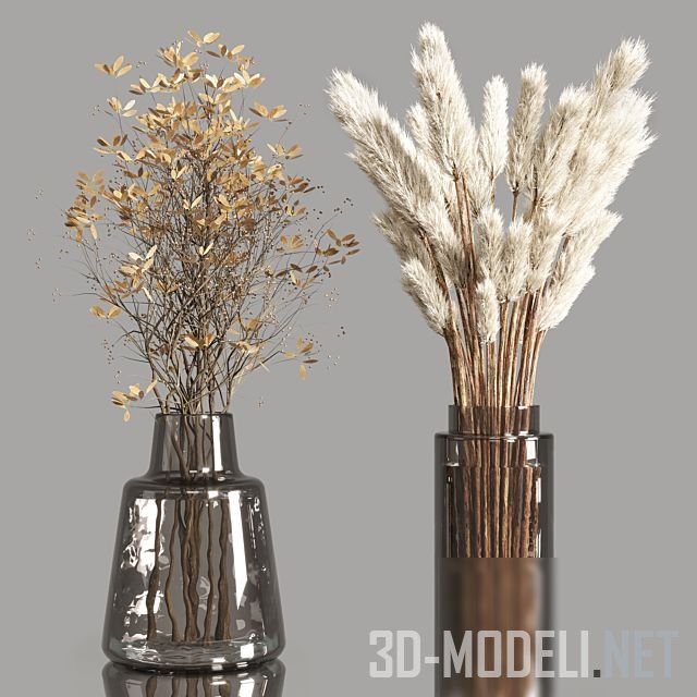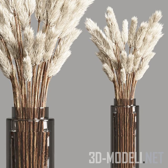 Пять красивых ваз с букетами из засушенных растений. Метелки в осенних оттенках бежевого смотрятся пышно и привлекательно и станут украшением в любой комнате дома.