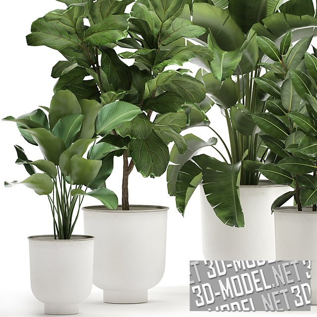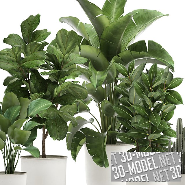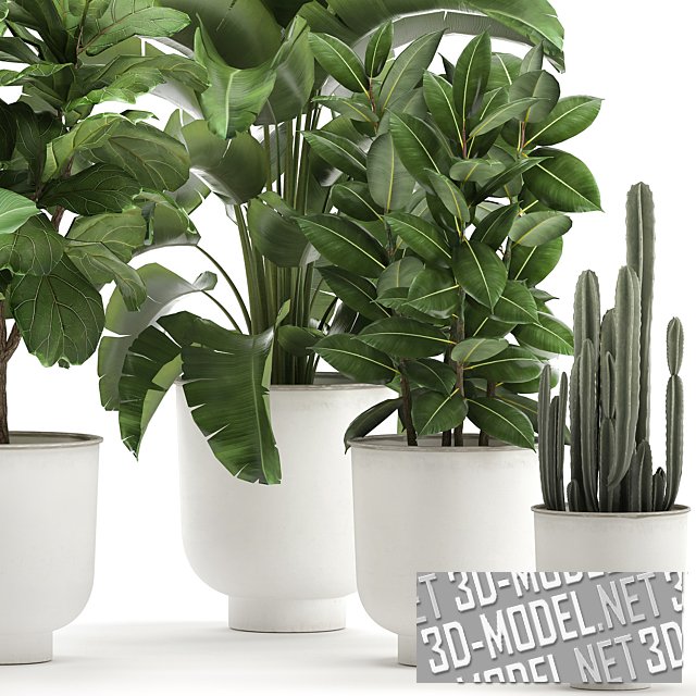 Качественный набор декоративных растений для улицы и интерьера. Растения в белых горшках Vig Planter L Set 2pcs, Gray. В набор вошли экзотические растения (цереус, кактус, фикус лирата, калатея лютея, фикус эластика, фикус каучуконосный, банановая пальма, стрелиция, равенала).