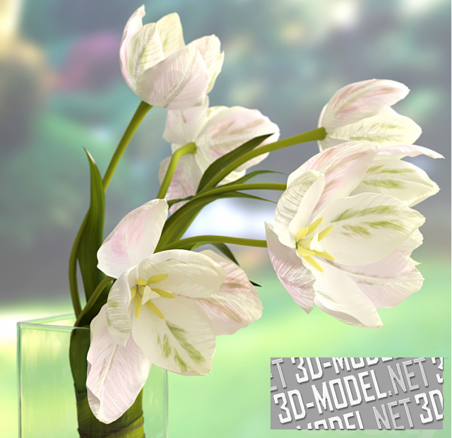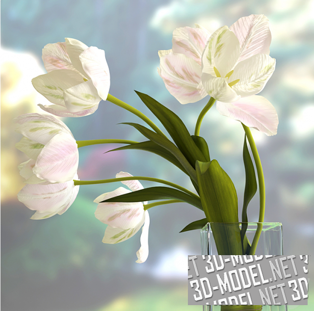Легкая весенняя композиция для украшения интерьера. Три стакана из прозрачного стекла имеют разную высоту и ширину, что уже создает интересный вариант декора. В самом высоком стакане стоит букет белых цветов.