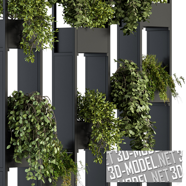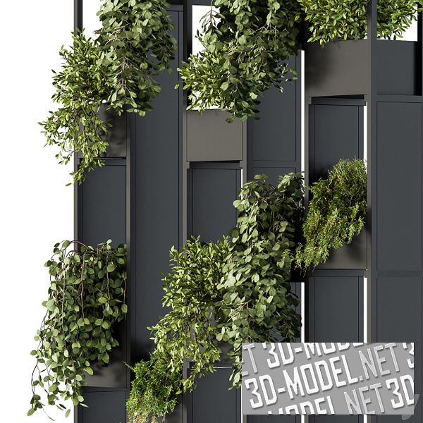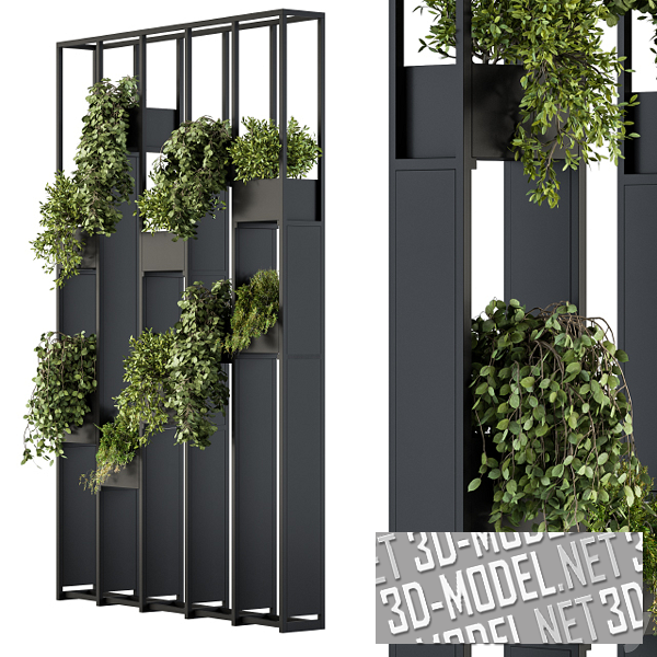 Вариант фитостены и зонирования пространства одновременно. Стильная перегородка темного цвета имеет разные урони размещения зеленых растений. Это позволяет создать в пространстве интересный декор и отделить какие-либо зоны, если потребуется.