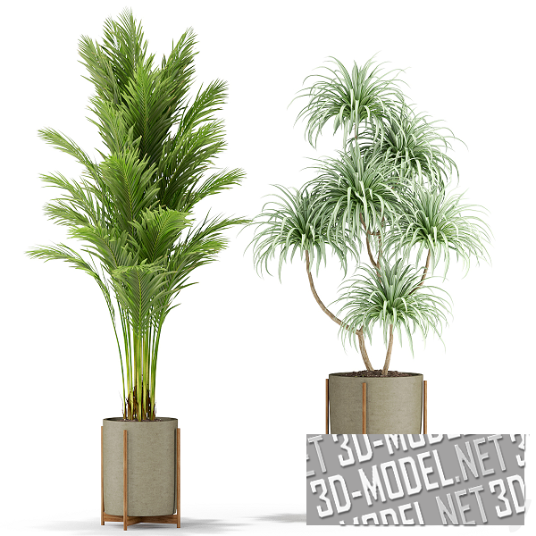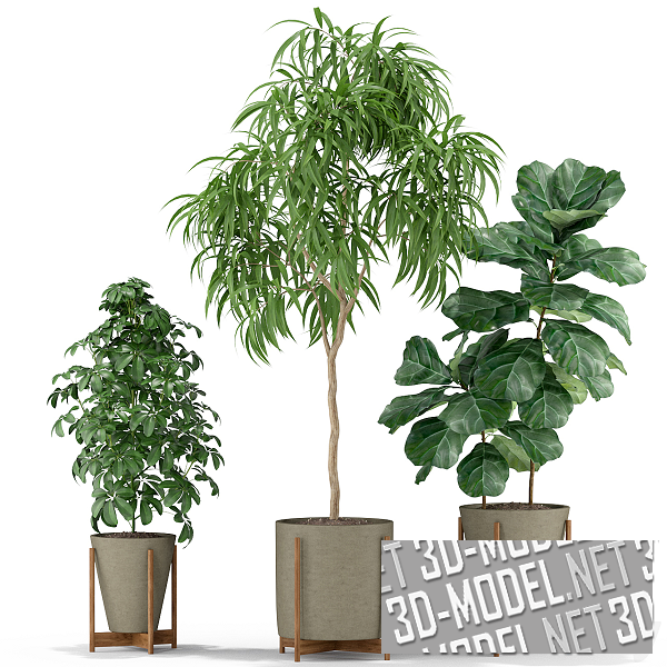 Набор комнатных растений в светлых горшках. Фикус, драцена, шеффлера, как самые популярные варианты, будут отлично смотреться в любом пространстве.