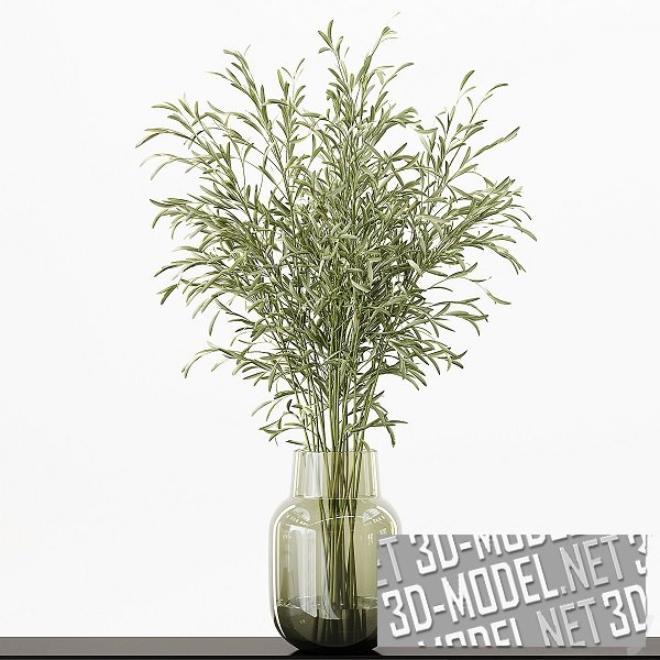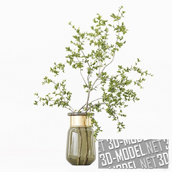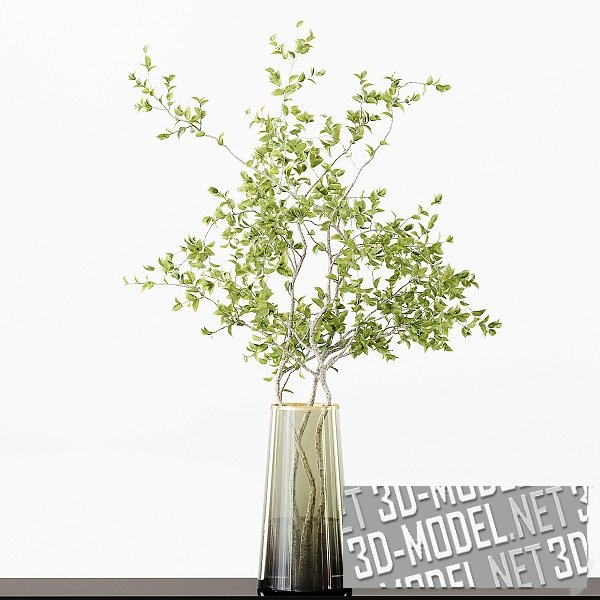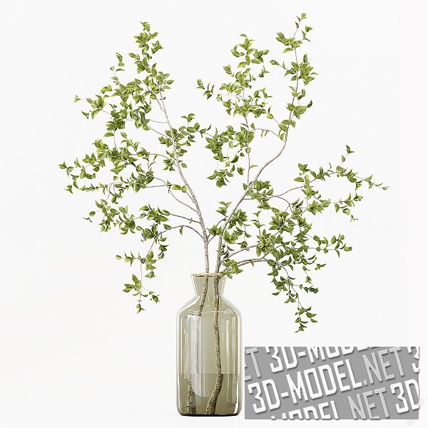 Ветки с листьями в стеклянных вазах