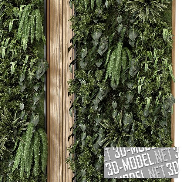 Фитостена с планками из дерева