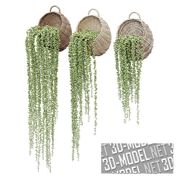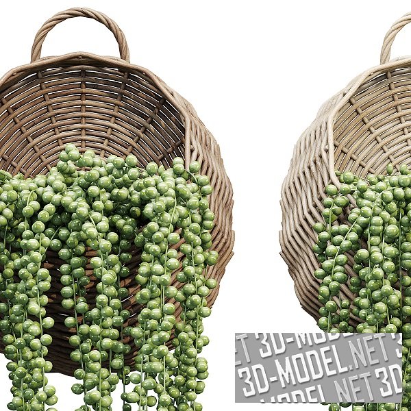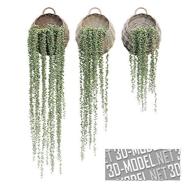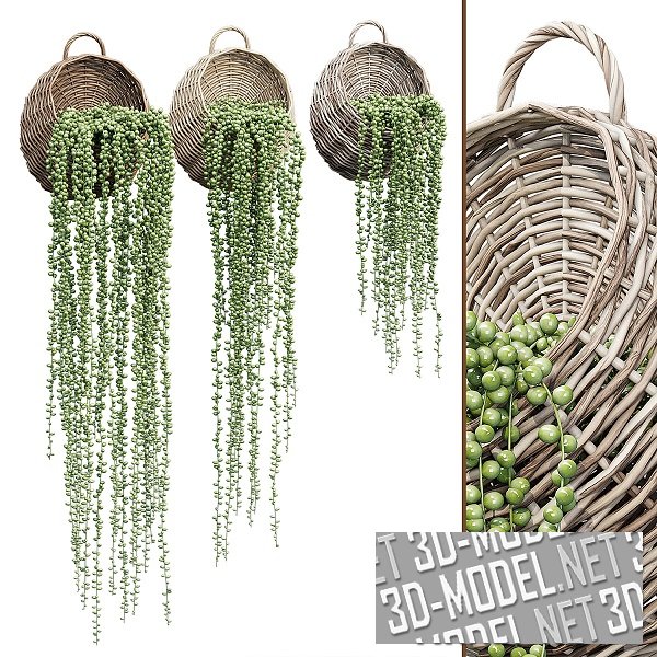 Оригинальные кашпо Cartallum Wicker в виде подвешенной плетеной круглой корзины с несколькими вариантами ампельного растения с длинными, свисающими плетями стеблей с зелеными шариками «листьев». Растение Крестовник Роули (Сенецио) послужит прекрасным украшением интерьера в стиле кантри. Габарит корзины: 23х18х10см.