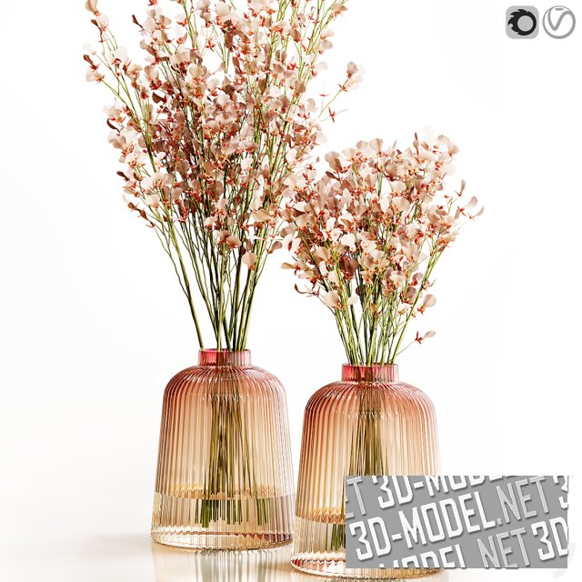 Две вазы с орхидеями сорта Oncidium Pink. Детализированная 3D-модель, которая добавит любой визуализации элегантности и уникальности, предлагая изысканный вариант для различных дизайнерских проектов. Материалы Vray, Corona и текстуры собраны в архиве.