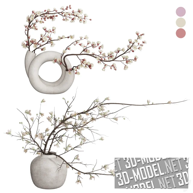 Простая и эстетичная ваза с цветущими ветками будет гармоничным украшением любого пространства. Высокого качества 3d-модель предлагается в трех вариантах цвета, что позволяет более точно настроить декоративный акцент в интерьере. Настроенные материалы Corona и необходимые текстуры находятся в архиве.