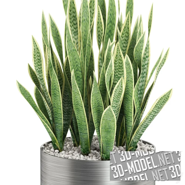 Привлекательное комнатное растение, посаженное в металлический горшок цилиндрической формы. Длинные листья сансевиерии оживят и украсят любой интерьер или экстерьер.
