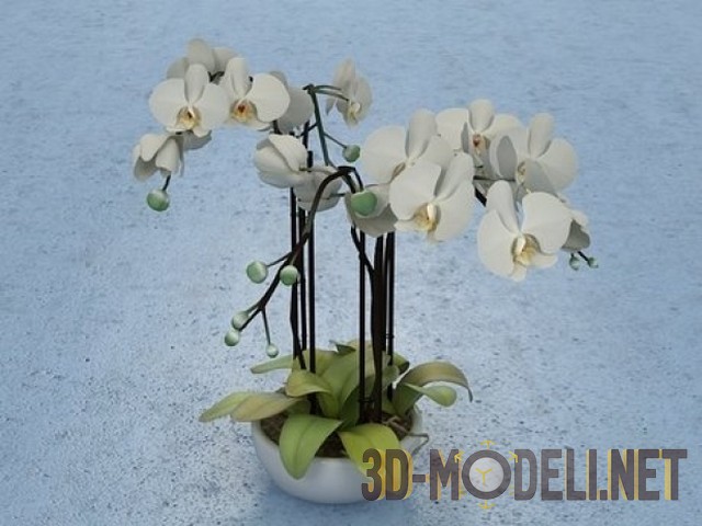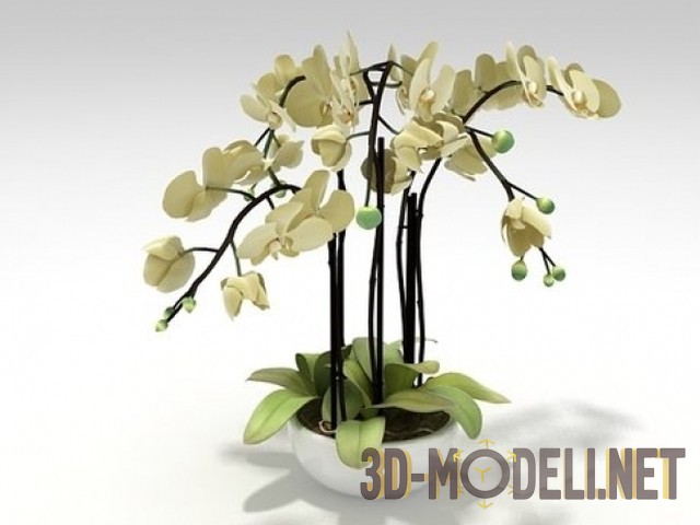 Реалистичная 3D модель комнатных растений – это красивые цветы, орхидеи, представленные в трех видах. Есть белые, розовые и желтые цветы. Можно использовать какой-то один, можно комбинировать для более живописных цветочных композиций, которые очень украсят любой интерьер.