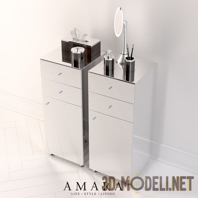 набор для ванной комнаты: аксессуары от Amara И зеркало House of Fraser. Комплект смотрится очень стильно и современно, и привнесет в пространство известный шик и функциональность.