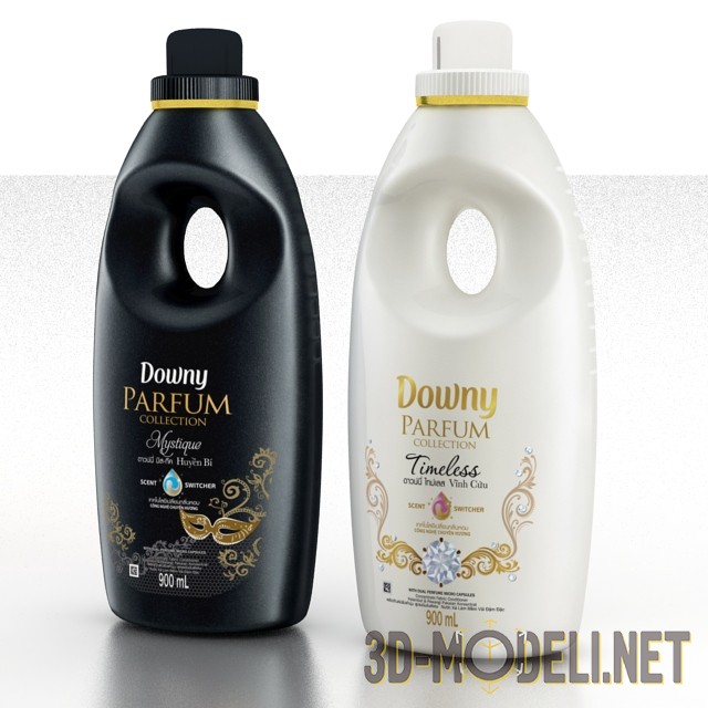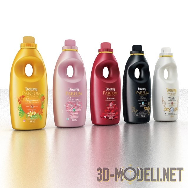 3d-модель кондиционера для одежды Downy parfum. Целых 900 мл свежести для вашей одежды на каждый день - этот кондиционер сделает вещи после стирки не только чистыми, но и очень мягкими. На выбор предоставлено пять ароматов свежести - это «Влечение», «Счастье», «Невинность», «Мистика» и «Страсть».