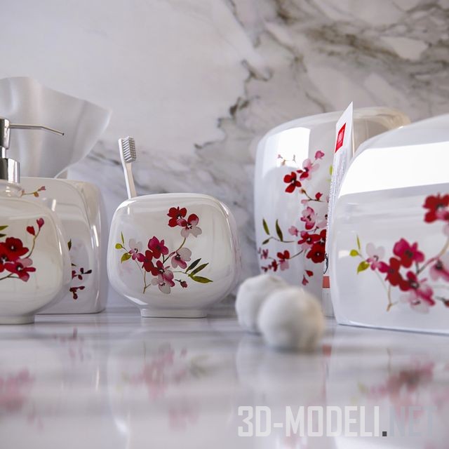 Прекрасный декоративный набор аксессуаров для ванной комнаты, Cherry Blossoms от Croscill Living. В комплекте: Емкость для зубных щеток (10,5 х 13 х 4,5 см)