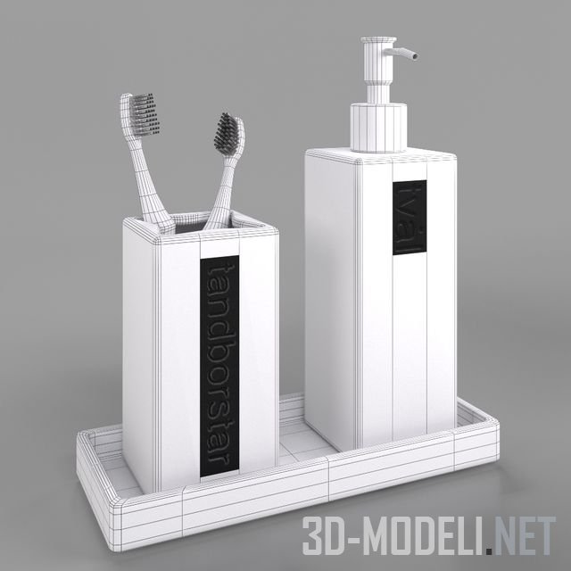Набор для наполнения современной ванной комнаты, аксессуары от Cult Design Sweden. В комплекте стакан, зубная щетка, подставка, дозатор. Размеры аксессуаров: