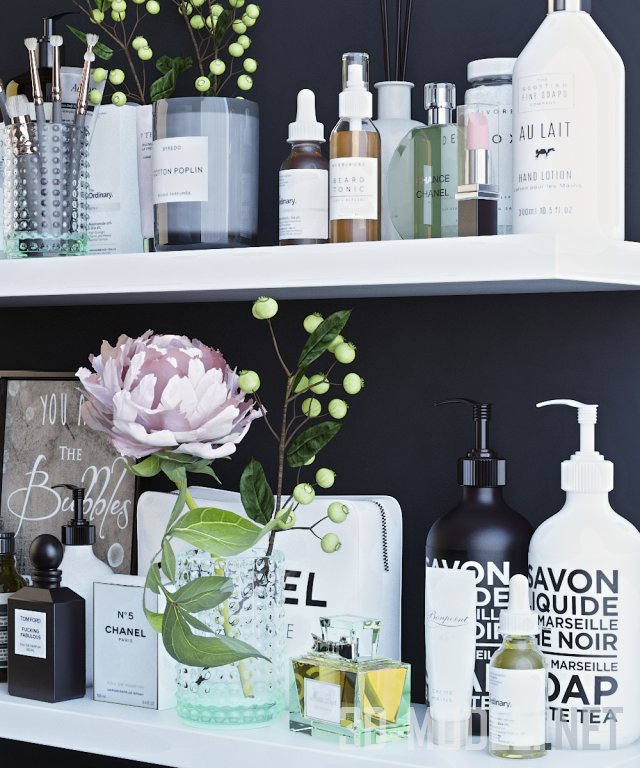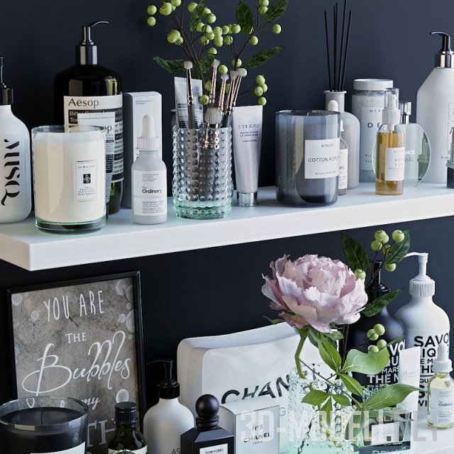 Набор косметики на полке в ванной