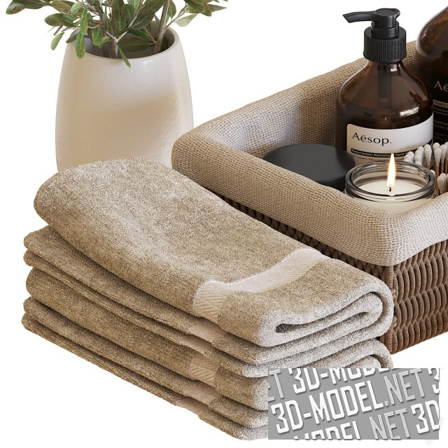 Банные принадлежности и олива в вазе