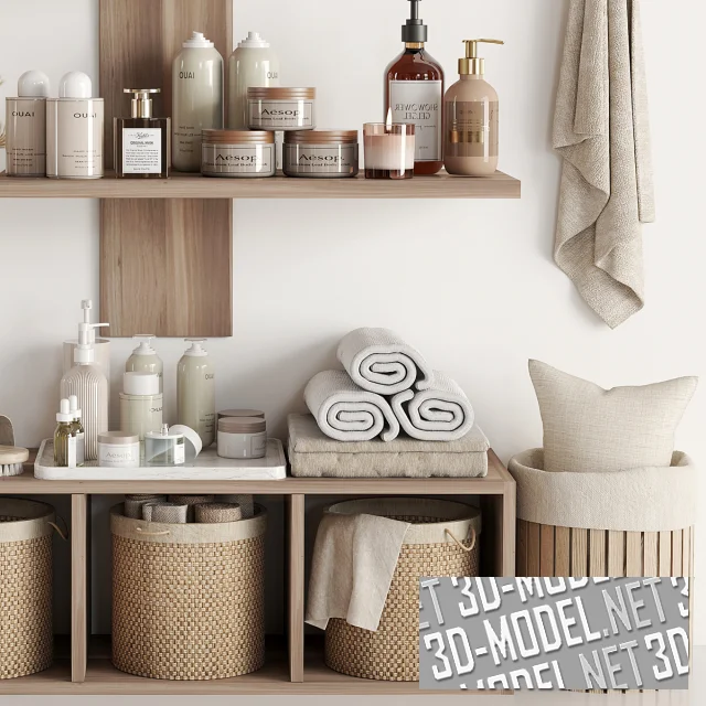 Деревянные полки с аксессуарами для ванной