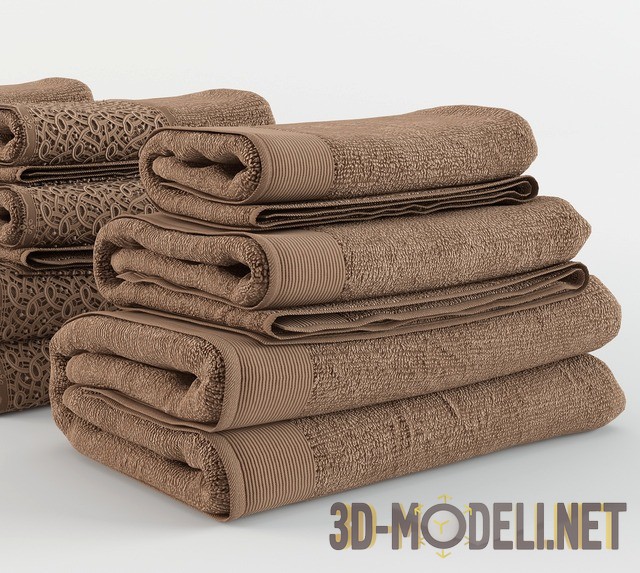 3d модель набора очень реалистично и детально проработанных полотенец с кружевом. Сложенные аккуратной стопкой, полотенца внесут в пространство ванной комнаты достоверных штрих и нотку уюта и неги. Представлены полотенца трех типов размеров: