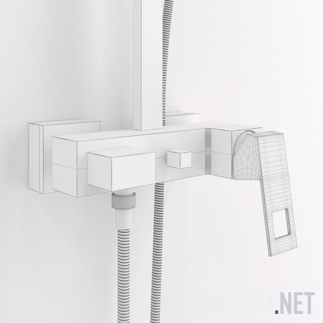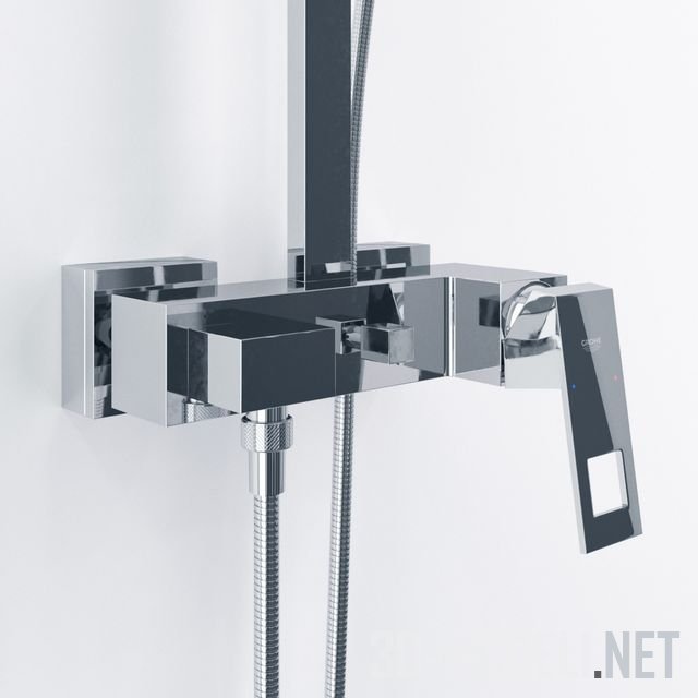 Современная душевая настенная стойка Grohe Euphoria Cube XXL System 230. Монтаж системы с однорычажным смесителем осуществляется к стене. Крупная, квадратная стационарная лейка, небольшая лейка на гибком шланге, угловатые конфигурации смесителя и прямоугольное сечение основной штанги стойки подчеркивают современный минималистичный стиль. Качественная и реалистичная 3d модель.
