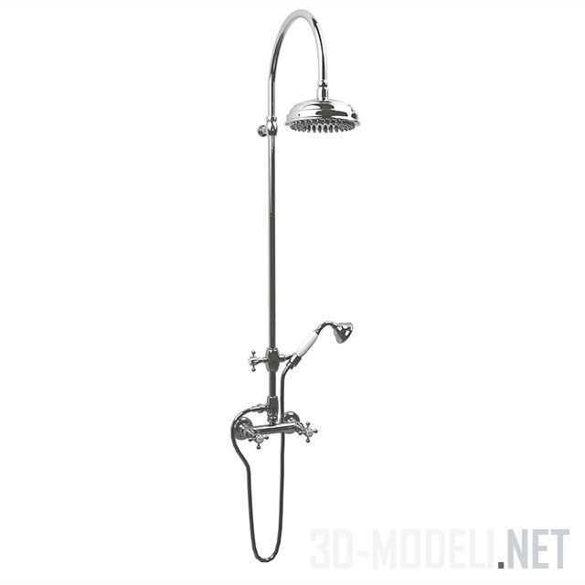 Душевая стойка в классическом стиле Bellosta Edward. Хромированный металл в отделке конструкции душевой стойки скомбинирован с белой керамической ручкой на гибкой душевой лейке. Ручки на смесителях - в ретро-стиле виде крестиков с шаровидными наконечниками.