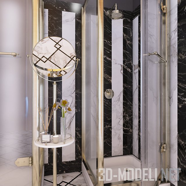 Бренд Devon & Devon всегда предлагает роскошные предметы, и душевые кабины и поддоны серии Arabesque, с шикарной облицовкой под мрамор и узорчатой плиткой в комплекте, станут изысканным дополнением ванной комнаты. Кабины представлены в трех конфигурациях – квадратная, угловая закругленная и прямоугольная. Небольшой круглый столик с декором смотрится уместно и красиво.