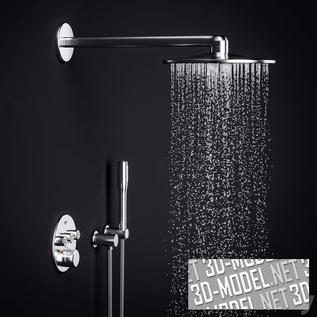 Современный комплект для обустройства душа с элементами скрытого монтажа от Grohe в минималистичном дизайне. В наборе: встроенный трехкнопочный смеситель с системой SmartControl с круглой панелью; большая верхняя круглая душевая лейка Rainshower 310 с двумя вариантами струи; ручная душевая лейка на гибком шланге Euphoria Cosmopolitan Stick.