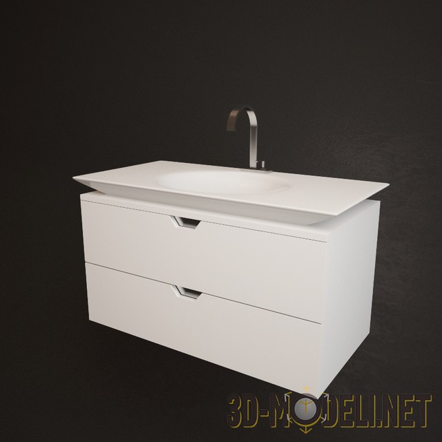 3D-модель тумбы и раковины «Roca Kalahari». Стильная, современная тумбочка, размером 951x450x500 мм, плюс красивая раковина с интересным дизайном (размер 1000x510x125 мм), составляют гармоничную мебельную группу для ванной комнаты. Смеситель Newform Egon 3810 отлично вписывается в эту «компанию».