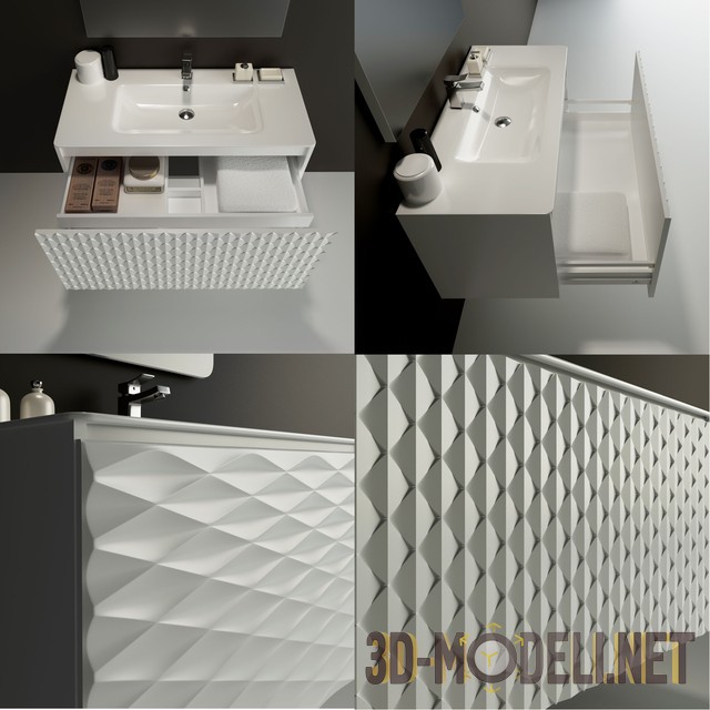 3D-модель подвесных тумбочек: Bretta Rubicon и Bretta Luna. Красивая мебель для ванных комнат от итальянской компании Bretta. Тумба подвесная Bretta Rubicon PL01100W06 идет с раковиной Gala Emma 30030 (размер 101х46 см.). Корпус изготовлен из МДФ, фасады - крашеный МДФ. Размеры тумбы: 100х45,5х52 см.