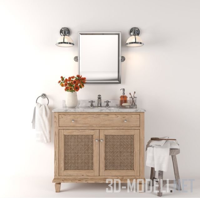 Набор Pottery Barn с умывальником, зеркалом и лампами