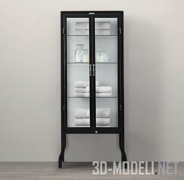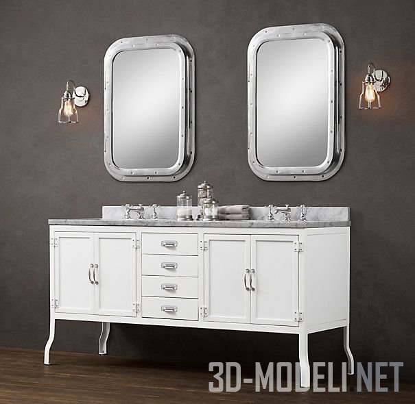Набор Pharmacy Collection Black от бренда Restoration Hardware содержит две раковины на тумбе, зеркала и светильники, а также высокий, «аптечный» шкафчик для полотенец и косметических средств.