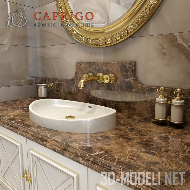 Прекрасный набор профессиональных 3д моделей разной мебели и аксессуары для ванной комнаты от бренда Caprigo - Ischia 150. В комплект поставки входят: зеркало Caprigo, смеситель F.lii Frattini Royal, держатели мыла и зубных щеток и плитка Colorcer Odyssey.