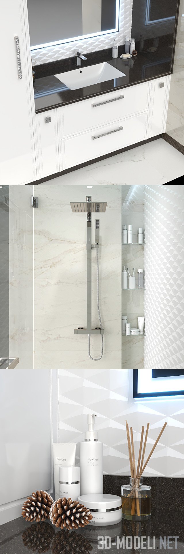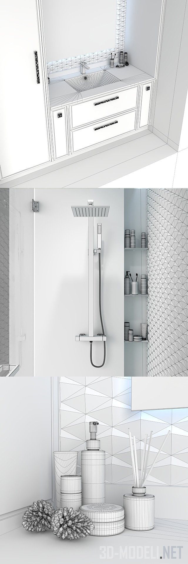 Умывальник Villeroy & Boch Loop & Friends 616320, смеситель Grohe Eurocube 23446000 и душевая система Emmevi Sicily CRC02781 составляют основу этого комплекта для ванной комнаты. В набор также входят материалы отделки: