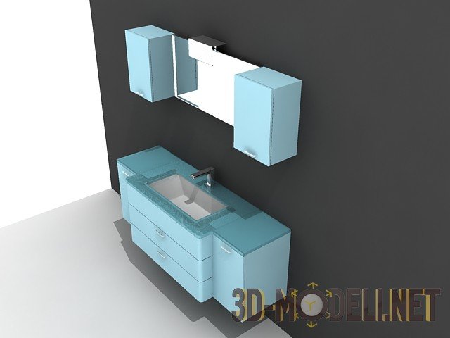 3d-модель голубой мебели для ванной комнаты. Стильная и современная мебель для наполнения ванной комнаты, особую свежесть которой придает яркий голубой цвет. Текстуры для этой модели не требуются, материалы настроены.