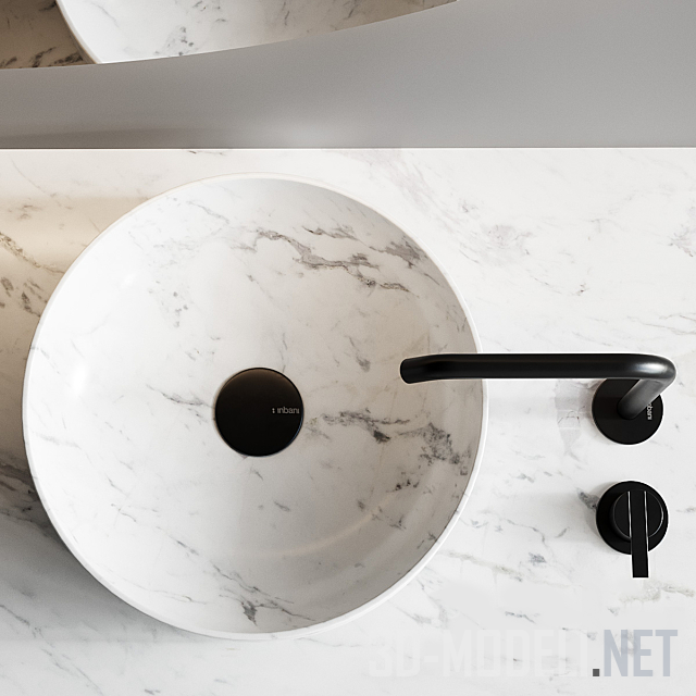 Современная подвесная тумба Grate с накладной круглой раковиной Arc, смесителем и зеркалом от Inbani. Тумба (габарит: 150х50х45см) с распашной створкой и двумя выдвижными ящиками, как и раковина (диаметр - 40см, высота - 10см) выполнены из белого с серыми прожилками мрамора. Черный смеситель и ручки на фасадах, черная заглушка на сливе раковины выглядят гармонично и современно. Большое круглое зеркало со скрытой подсветкой по периметру дополняет комплект.