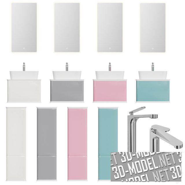 Комплект современной мебели для ванной комнаты Jorno Pastel 58. В наборе шкаф 58 (574x386x526 мм), с покрытием глянцевая эмаль (цвет белый жемчуг, французский серый, розовый иней, бирюзовый бриз), мойка Мелана MLN-7050H (480 х 140 х 370 мм), зеркало Jorno Pastel 46 LED (455 x 855 x 146 мм), пенал Jorno Pastel 125 (габаритные размеры 344 х 1232 х 280 мм), хромовый смеситель Agger Beauty A2612100 (48 х 281 х 175 мм).