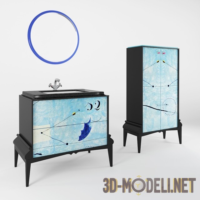 3d-модель гарнитура для ванной комнаты MIRO MOBILI. В набор входит MIRO AZUR, MIRO TAMBOURIN и MIRO CAOBA. Модель представлена в трех вариантах отделки, текстуры для всех есть. В архиве находятся файлы 3dx max 2011, 2014 b obj. Одна из моделей гарнитура с двумя смесителями - смеситель Elghansa и смеситель Nicolazzi nuova brenta.