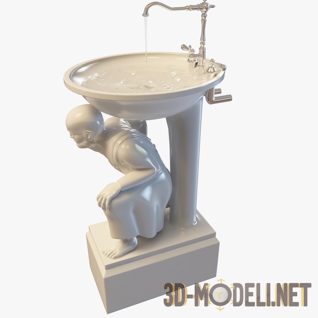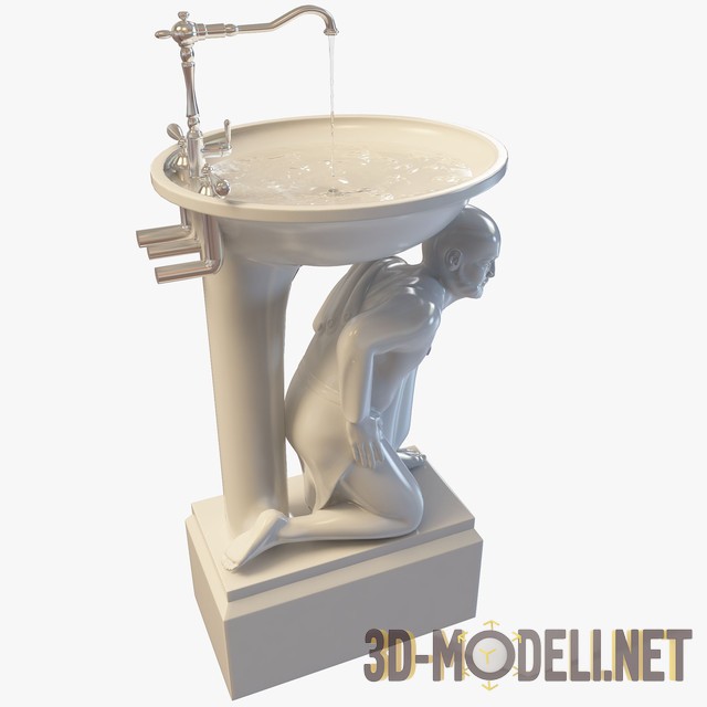 3D-модель умывальника со скульптурой в основании. Оригинальная раковина, способная украсить интерьеры в классическом стиле, внося с собой философскую нотку.