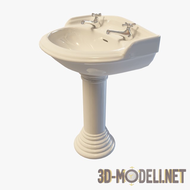 3d модель классического умывальника на красивом постаменте, с двумя кранами. Идеальная модель для оформления интерьера ванной комнаты в классическом стиле.