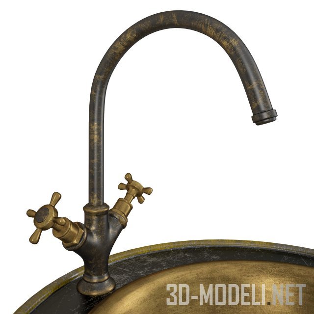 Раковина в стиле лофт. Выполнена на базе металлической бочки из под горючего с вмонтированной сверху латунной круглой раковиной. На смесителе в ретро-стиле вентили тоже латунные. Поверхность графитово-серой бочки искусственно состарена царапинами и потертостями. На боковой плоскости - желтая надпись в прямоугольнике "BY PASS".