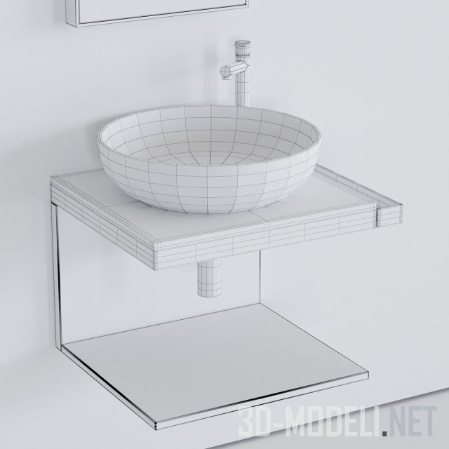 Тумба. Модель 2018 года от дизайнеров Andrea Parisio, Giuseppe Pezzano. Выполнена в виде трех плит, соединенных в С-образную конструкцию. Справа от раковины смонтирована скоба для полотенца. Смеситель вмонтирован в правом дальнем углу верхней плоскости тумбы. Габарит тумбы: 500 х 480 х 390 мм.