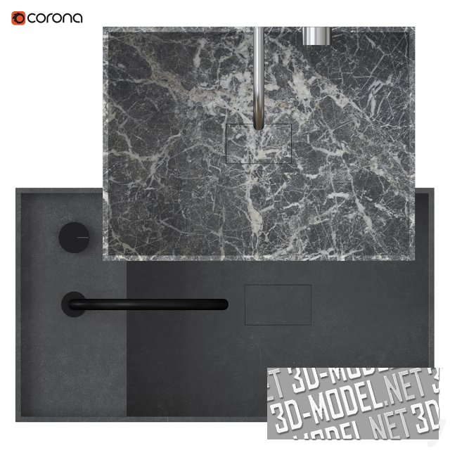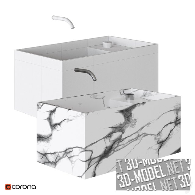 36 х 60 х 45 см, 36 х 80 х 45 см. Раковины комплектуются смесителем ACQUIFERO. Hi-Poly 3d-модель с настроенными материалами Corona и текстурами в архиве.