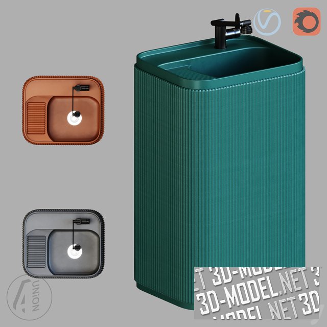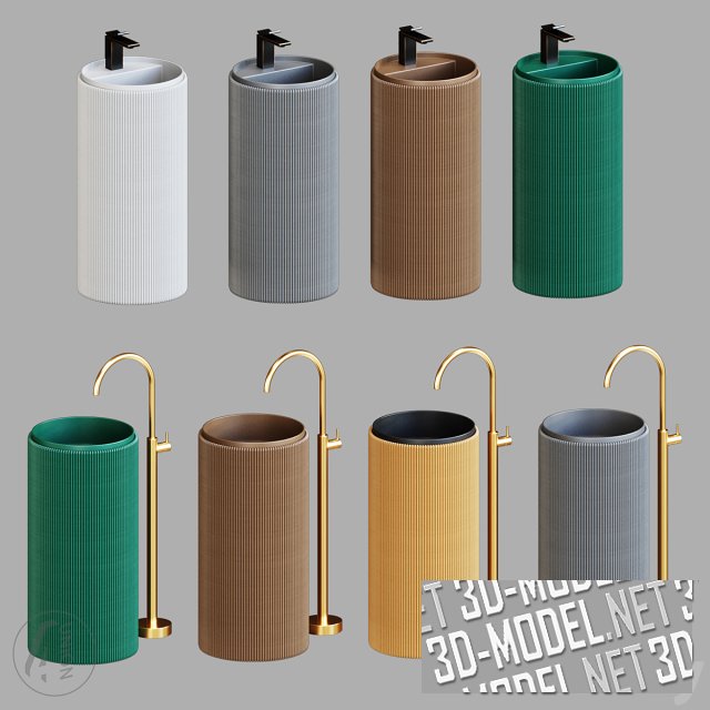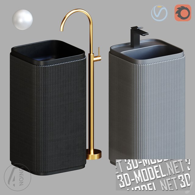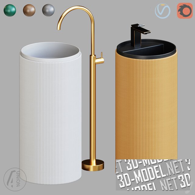 Современные отдельностоящие умывальники RUST A WB-0041_B WB-0042_C WB-0043 4 Union.ru с гофрированными поверхностями боковых плоскостей. Модели укомплектованы врезными или отдельностоящими смесителями разной конструкции и цвета.