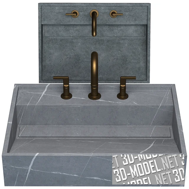 Смеситель и ручки из теплого бронзового металла создают нотку благородного контраста и делают раковину акцентным элементом в ванной комнате. Поверхность HYDRA доступна в вариантах серого бетона и благородного камня с естественными прожилками.