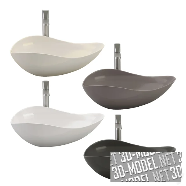 Тонкостенная настольная раковина FINECERAMIC OHTAKE REF: 327A13650 белого цвета имеет органичные формы и вневременной дизайн. Бразильский архитектор OHTAKE REF проектировал ее, будучи вдохновленным изгибами волн. Длина чаши 375 мм. В сцене представлено три варианта цвета и металлический смеситель.