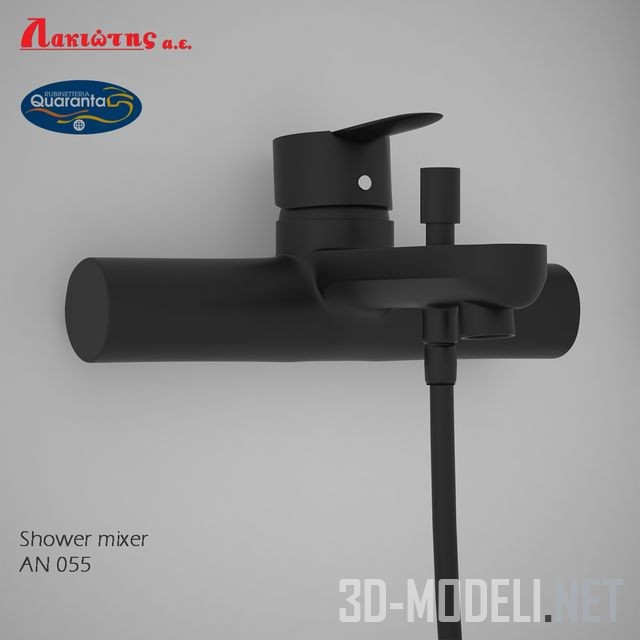 Современный однорычажный смеситель для душа Lakiotis Rubinetteria Quaranta, AN055, с лейкой на гибком шланге. Поверхность отделана черным матовым.