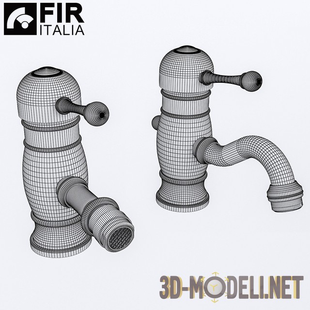 3D модель смесителей для умывальника Fir Melrose. Модели смесителей в классическом ретро-стиле - MELROSE 70- 70.2410.5 и 70.1410.5, производство фабрики Fir (Италия). Однозахватные смесители с традиционной формой излива. Способ монтажа - горизонтальный, тип монтажа - наружный врезной.