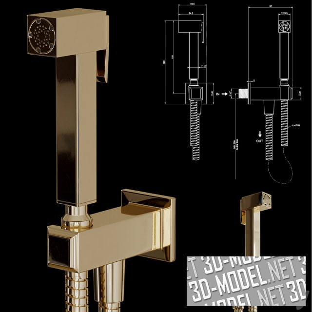 Современный гигиенический душ Eleganza (Art.46285) от Gessi в золотистом и серебристом декоре. Настенное крепление к выводу воды, ручка и головка лейки - квадратного сечения, что придает дизайну строгость и солидность.